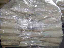 儲運注意事項 應貯存於通風幹燥庫房中。袋口必須密封紮牢,防止受潮、結塊。不可與強酸、強堿商品共貯混運。集裝袋必須垂直在托盤上,同時以卷筒紙牢固好。