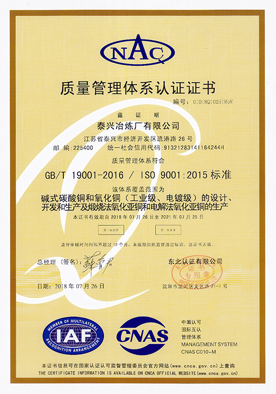 Copyright(C)2018, Taixing Smelting Plant Co., Ltd. All Rights Reserved. Supported by ChinaChemNet ChemNet Toocle Copyright Notice 備案序號:蘇ICP備12842948號-2